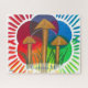 An original acrylic painting of three mushrooms in natural earthy shades, standing proud against their backdrop of a colourful 'Seed of Life' with an equally vibrant sunburst radiating outward. Seed of Life: seven circles placed with sixfold symmetry, forming a pattern of circles and lenses, that act as a basic component of the "Flower of Life". Flower of Life: a visual interpretation of the connections of life which run through all sentient beings. Revered by philosophers, architects and artists around the world, providing a deep spiritual enlightenment to those who have studied it as sacred geometry.
