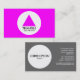 A business card template with a simple but attention grabbing circle design with a solid colour triangle generic logo decoration. An attractive design in itself or can be replaced with your own logo, or additionally customized. Company name and business type on the front, with name and other contact details on the reverse using the same circle motif arranged to one side.