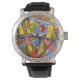 Circles And Squares-Unique Watch with Hand Painted Modern Bauhaus Geometric Art in Bold Vivid Colours