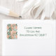 These return address labels have a design of circles decorated with lines and circles made of repeating dots in retro green and coral.