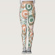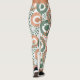 These leggings have a design of circles decorated with lines and circles made of repeating dots in retro green and coral