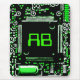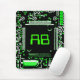 Modern design featuring a close up of a computer circuit board in green, black and white, and your initials written in green. Mousepad with a customizable design for you to personalise with your own text, pictures and ideas. Created using an original photograph and digital techniques by Jess Perry.