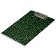 A digital abstract pattern resembling a stylized computer circuit board, in glowing green and black.