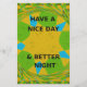 Phrases: "HAVE A NICE DAY" and "& BETTER NIGHT" serve as the central messages, delivering positive wishes that resonate with viewers.
