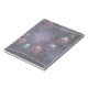 An illustration of infinity, crossing the universe to combine the microscopic and the telescopic in a rainbow display of shapes and colours. A column of multi-coloured atoms of blue, pink, red, and green circled by silver rings, spiralling across outer space against a backdrop of colourful fractal galaxies.