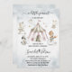 Circus Animals Mobile Baby Shower Invitation. Personalize with your baby shower details beneath. Cards reverse to a pattern of animals, circus tents and stars.