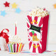 Bring the magic of the big top to your celebration with this vintage-style circus favour box! Designed like an old-fashioned popcorn box, it features bold red and white stripes, cheerful yellow stars, and a central white oval with a customizable black “Enjoy” sign. Below, a friendly lion sits surrounded by bright red, yellow, and green balloons—perfect for birthdays, carnival parties, and circus-themed celebrations. Ideal for holding candy, small toys, or thank-you treats, these boxes add whimsical charm and a splash of nostalgia to any kids’ party.