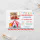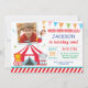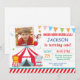 Circus Carnival Birthday Party Invitation with custom photo. Boy 1st First Birthday Invitation. Circus themed Party. White Background. For further customization, please click the "Customize it" button and use our design tool to modify this template.
