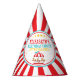 Come one, come all! Thank everyone for coming to the greatest birthday party under the big top with our red and teal circus carnival round hat templates. This circus carnival ticket birthday label features red circus tent background with a red and teal carousel on a hat design.