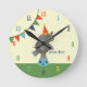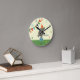 A clock featuring an illustration of a circus elephant standing on a platform wearing an orange hat. Personalize with your name to the bottom right of elephant.