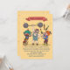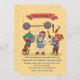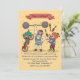 This cute invitation features a clown riding a unicycle, a weight lifter and a juggling clown.
