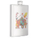 The product is a good size and came exactly as it was pictured. The lid is not attached to the flask, which could be dangerous on drunken nights... The print came out surprisingly well and looks very sharp. Would definitely recommend.