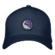 Fits well due to elastic edging, not adjustable. Good qualty material. Good quality embroidering. Subtle lettering (white on beige) just as my wife likes.