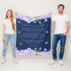 Couverture florale fille avec texte élégant qui peut être édité et personnalisé avec vos propres noms. Il présente des fleurs en violet, violet et rose, des papillons, et une citation sincère et significative d'un père disant "À ma belle fille, peu importe si proche ou éloigné, vous êtes toujours présent dans mon coeur. Je suis béni d'être ton père et je serai toujours là pour t'aimer et te guider quand tu as besoin de moi. Enveloppez-vous dans cette couverture quand vous avez besoin d'un câlin. Amour, papa".