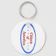 This key chain displays a badge stating "Citizen of America" written in red with three blue stars on each side of the text and a blue rim around the edge.