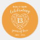 Citrine celebrating 13 years of love anniversary stickers. Simple outline heart stone effect line art graphics orange and white 13th Wedding Anniversary round stickers. Customize with your own thirteenth wedding anniversary party details. The 13th wedding anniversary is associated with the gemstone citrine and the heart symbolizes love. Graphics and design by Sarah Trett for www.mylittleedenweddings.com on zazzle.