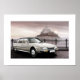 Poster illustration designed and illustrated by myself, of the unique and special Citroen CX Prestige. The posher and long wheelbase version of the standard CX saloon. Illustrated with Mont Saint Michel in the background in a moody misty setting.