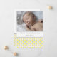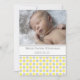 Nouveau bébé garçon cartes photos sur mesure dans adorable et élégant canari jaune, gris et blanc amusant et moderne motif pois, entièrement personnalisable avec la photo et les détails de naissance de votre bébé, une excellente façon de partager l'heureuse nouvelle de la naissance de votre fils avec des amis et la famille.