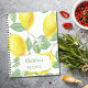 Des citrons juteux, délicieux et aquarellés en jaune, vert et blanc. Un étiquette devant avec des modèles pour Votre nom et votre titre. Lettres vertes.