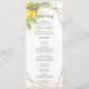 Programme de mariage des citrons Eucalyptus Fleurs Jaunes. Le style romantique avec citrons aquarelles, fleurs jaunes et eucalyptus est parfait pour un mariage d'été rustique. Le cadre géométrique en fausse feuille d'or apporte une touche moderne. L'aquarelle complète la composition et lui confère un charme particulier.