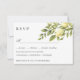 Conçue pour coordonner avec notre collection de mariages floraux aux aquarelles citrons et Feuille, cette carte RSVP botanique élégante comprend une branche d'aquarelle sophistiquée de citrons et de feuilles jaunes sur le côté supérieur droit de la carte, avec la date de réponse souhaitée et le choix de repas ou d'entrée. Cartes inversées à un gris fusain contrasté Un design moderne et classe pour des mariages chic et élégants pour toute saison. Nous pouvons modifier les couleurs, les polices et plus pour rendre votre design unique et personnalisé Pour obtenir de l'aide ou une demande personnalisée, veuillez nous contacter par l'intermédiaire du magasin ou écrire à citronelladesign@gmail.com