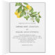 Citron jaune rustique et fleurs thème mariage - citrons peints à la main et fleurs décorent l'avant tandis que les rayures de trait de brosse jaune pâle et vert feuille d'aquarelle sont présentées à l'intérieur - calligraphie écrite à la main associée à une police non serif propre pour un attrait rustique moderne. Conception par ©WhimsicalArtwork™ pour BarefootBride™. Cela fait partie d'une suite mariage complète, ainsi que d'anniversaire et de baby shower. Si vous avez besoin d'aide pour customiser cette conception, veuillez contacter indy.designer@yahoo.com