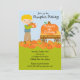 Commencez votre fête d'anniversaire de garçon aux cheveux noirs tout de suite avec nos citrouilles sucrés qui choisissent l'invitation d'anniversaire avec un coiffeur blond tenant un citrouille avec un chariot rempli de citrouilles debout au milieu d'un carré citrouille. C'est mignon pour un citrouille d'automne qui ramasse les fêtes d'anniversaire des garçons. Visitez notre boutique pour voir d'autres invitations à la fête d'anniversaire mignonnes et des notes de remerciements assorties, des autocollants et des timbres-poste. © Illustrations JW