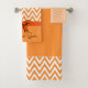 Motif chevron épice de citrouille orange et blanc sur un ensemble de serviettes de bain que vous pouvez personnaliser. Chevron est un motif en V inversé, chaque côté se rencontrant au point sans interruption. Le résultat est un motif zébré audacieux, classique et sans couture. Semblable mais légèrement différent du motif à chevrons traditionnel. Serviettes colorées à personnaliser pour vous-même, votre maman, papa, oncle, tante, frère, sœur, voisin, grand-père, grand-mère, mari, femme, ami ou collègue de travail.