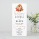 Découvrez l'essence de l'automne dans le style avec notre programme de mariage Bliss Blanc, avec un design contemporain et subtilement bohème parfait pour les mariages sur le thème de l'automne. Embrassez l'esprit de la saison avec un seul citrouille remarquable, décoré avec art par une tapisserie de magnifiques feuilles d'automne dans les teintes d'orange vif, vert riche et brun chaud. Ce design captivant incarne sans effort la beauté et le charme de Fall, créant une scène accueillante et pittoresque. Contre l'arrière - plan blanc et propre, le citrouille et les feuilles environnants se distinguent, mettant en valeur les subtilités et les couleurs vives de la saison. La simplicité de l'arrière - plan blanc accentue la beauté naturelle du design, offrant une esthétique élégante et fraîche qui complète tout cadre mariage. Le texte noir et gris dans une simple police de caractères assure clarté et lisibilité, fournissant des informations essentielles sur la cérémonie et la fête de mariage à l'arrière du programme. Mais pour ajouter une touche de fantaisie et d'élégance, les mots "Welcome", "Ceremony" et "Wedding Party" sont délicatement présentés dans une jolie police de caractères décorative. Cette police de script ajoute un élément de grâce et de charme, créant un contraste délicieux contre la simplicité structurée de la police de bloc. Choisissez notre programme de mariage Bliss Blanc pour insuffler un sentiment d'enchantement et de sophistication à votre célébration d'automne. Il sert non seulement de guide pour vos invités, mais aussi de gardien chéri, incarnant l'esprit magique de votre journée spéciale.