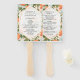 Fresh oranges and orange blossoms on a soft mint background ceremony and wedding party hand fan. A wedding invitation inspired by citrus and floral, an elegant bohemian design with geometric accents wedding program fan.