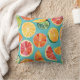 This artwork showcases a lively and refreshing pattern of citrus fruits, featuring vibrant slices of oranges, lemons, limes, and grapefruits against a bright turquoise background. The juicy, colourful fruit slices are depicted with a playful and stylized approach, capturing the essence of summertime and freshness. The use of bold, contrasting colours and the circular arrangement of the fruits create a dynamic and eye-catching composition that exudes energy and zest.