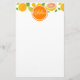Stationery with a pattern of smiling orange, lime, grapefruit, and lemon characters with green leaves. The name and monogram combination can be customized.