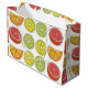 Citrus Fruit Large Gift Bag original design by Nisha Prabhu. Celebrate in style with our Citrus Fruit Large Gift Bag! Bursting with vibrant images of juicy oranges, zesty lemons, and refreshing limes, this gift bag captures the essence of summer and happiness, making it perfect for birthdays, holidays, or any festive occasion. Featuring comfortable handles for easy carrying, this large gift bag is not only practical but also a stylish choice for any celebration. Make your gift-giving experience even more special by pairing it with our coordinating tissue paper for a complete look! Bright and playful citrus fruit design. Perfect for birthdays, summer parties, and festive occasions.