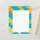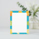 This stationary paper features limes, lemons, and oranges on a teal blue background.