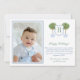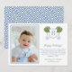 Preppy Happy Holidays photo card design featuring a stylized orange tree in a blue and white planter. In front of this is a crest shape with space for a single letter monogram. The watercolor elements were originally handpainted by me in watercolors onto 100% cotton paper before being scanned and arranged / styled digitally (the crest shape is by another artist). The reverse side features a Greek Key pattern, created digitally by me. You can change the contrast colour on the reverse (currently a mid blue) by changing the background colour on the reverse (click to customize further underneath the text customisation area. This will take you into the design tool.