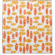 This shower curtain has a repeating pattern of ovals in retro orange and yellow with scattered white ovals all on a field of white.