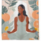 Immerse yourself in tranquillity with this minimalist illustration of a serene woman in meditation, surrounded by vibrant citrus fruits and lush tropical leaves. The soft, earthy tones create a calming atmosphere, perfect for bringing a touch of nature and peace into any space.