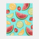 Citrus Melon Strawberry Fruits On Light Blue Fleece Blanket
