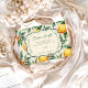 A fresh and cheerful baby shower design inspired by sunny citrus orchards. Bright lemons, delicate blossoms, and soft green leaves frame a classic scalloped centerpiece, creating a warm and inviting look. Perfect for spring and summer celebrations, this design blends natural charm with elegant typography for a timeless feel. A beautiful choice for honoring the mother-to-be in a vibrant, joyful setting.