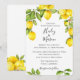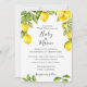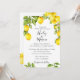 Watercolor lemons, leaves, and flowers, wedding invitation. Customize font style, colour and size.