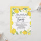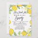 Citrus principal presser nuptiale invitation Cette invitation nuptiale à la courge de citron comprend une calligraphie de brosse en noir et un citron et une couronne de fleurs. L'arrière de l'invitation est une image jaune aquarelle avec un petit motif point. C'est un design sucré et une belle façon pour les clients invitations d'une douche nuptiale.