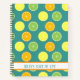 Lemon, lime and orange slices decorate this teal blue notebook perfect for school, home or work which can be customized with ANY name or phrase. Choose your paper type, spine colour and more!