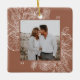 A modern and elegant holiday ornament that frames your favourite square photo in a beautifully detailed frame with pine boughs, winter leaves, star anise, and citrus slices on a rich earth toned background. Personalize the back of this unique Christmas photo ornament with your family name.