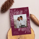 A modern and elegant holiday card that frames your square photo in a beautifully detailed frame with citrus fruit slices, star anise, and pine boughs on a rich burgundy plum background. "Holiday Joy" appears at the top right, with your family name along the bottom. The year is tucked elegantly at the lower left of the finely detailed white botanical frame. A delicate and refined nature inspired choice for your Christmas 2021 cards.