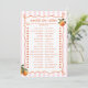 Introducing our enchanting Spritz themed 'Would she rather' game card, designed to make your special day even more memorable. This design features an orange hand-drawn doodle frame on a soft pink striped background. Adorning the frame are watercolor oranges, as well a hand drawn, whimsical orange slice, adding a touch of playful elegance to the design. The handwritten font beautifully complements the artistic frame, creating a cohesive and charming look that will captivate your guests from the moment they see it.