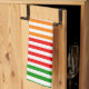 Citrus Stripes Kitchen Towel, bright red, green orange and yellow stripes on a white background. This towel is absorbant and wonderful to use to dry freshly washed fruits and vegetables on. A great hostess gift.