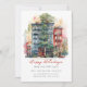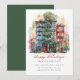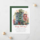 This festive Christmas holiday moving announcement features the saying "Happy Holidays from Our New Place" with a beautiful watercolor city apartment with a big Christmas tree. The announcement is perfect for sending to friends and family during the holiday season to let them know about your new address. The front of the announcement features the saying and the watercolor snowy city street scene, and includes your new address and contact information. The overall design is festive and charming, and the announcement is sure to put a smile on the faces of your loved ones.