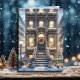 Personalized Christmas card. Ai illustration of a festive Brownstone city apartment in the middle of the city. Send someone city greetings with this cute city Christmas card.