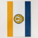 This design features the flag of San José, which is the largest city in Northern California; it is the cultural, financial, and political centre of Silicon Valley. It is located in the centre of the Santa Clara Valley, on the southern shore of San Francisco Bay. Many major global tech companies maintain their headquarters in San José, in the centre of Silicon Valley.