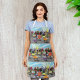 A cityscape with traffic on a highway in the foreground. This design looks really effective on these Apron